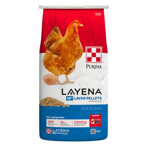 Purina Layena layer feed provides all 38 nutrients laying hens need once they’re 18 weeks old and laying eggs. Feeding Purina Layena to your hens provides you with delicious and nutritious eggs that your family and community can enjoy. The exclusive Purina Oyster Strong System strengthens eggshells with added calcium from oyster shells, Vitamin D and manganese. Our pellets are wholesome and balanced, supporting reproductive and overall health with no need to supplement.